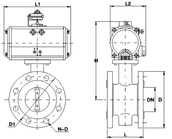 | DN | D | D1 | D2 | H | L | L1 | L2 | N-D | 气缸型号 |