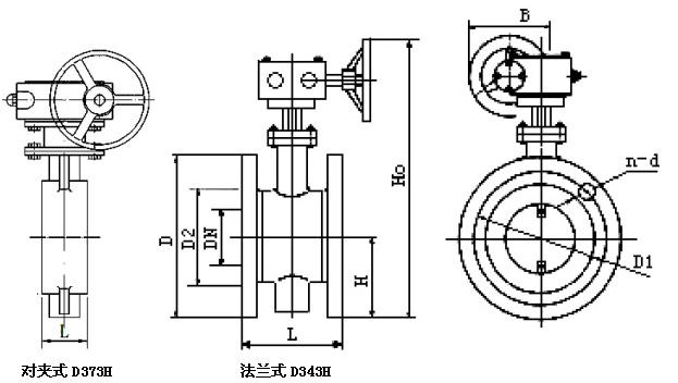 | DN | D | D1 | D2 | H | 法兰L | 对夹L | B | H0 | n-d |